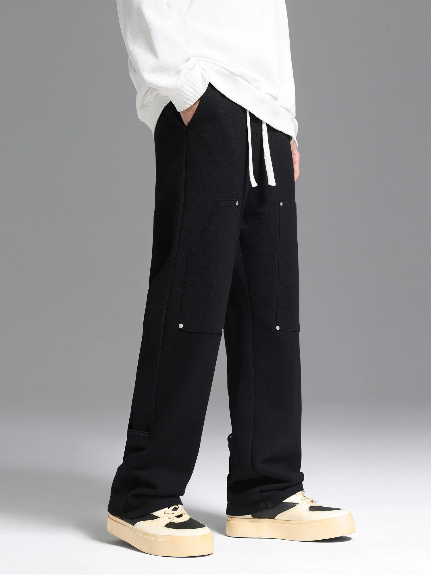 Back Strap button-down Logging Sweatpants Straight Leg Loose Heavy Cotton High Street Slacks