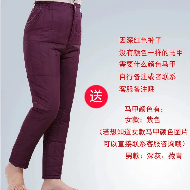 Warm Winter Trousers Down Pants Thickened High Waist Cotton Wear Inside and Outside Unisex