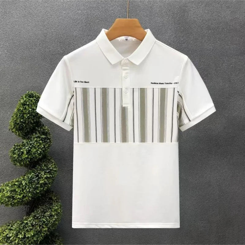 Korean Summer Men Striped Polo Shirts Streetwear Fashion Male Clothing Tees Basic Short Sleeve Casual Business Versatile Tops - Pure White / 4XL (80-88KG) / VIP Price is backordered and will ship as soon as it is back in stock.