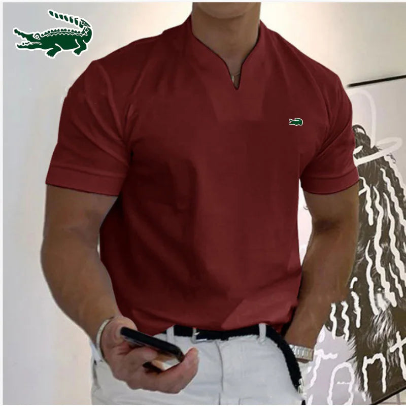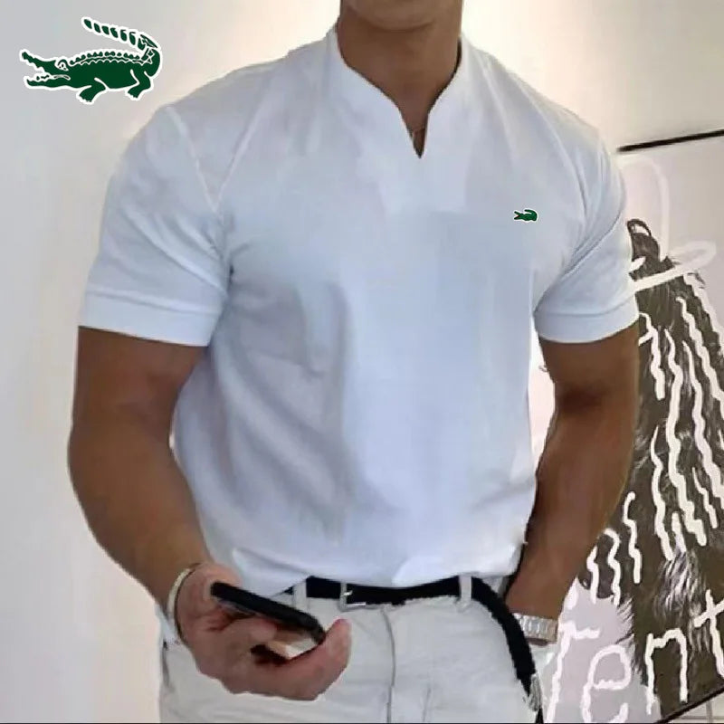 Men's V-neck High-quality Cotton Embroidered Polo Shirt Spring/Summer New Short Sleeved T-shirt Casual Sports Breathable Short S