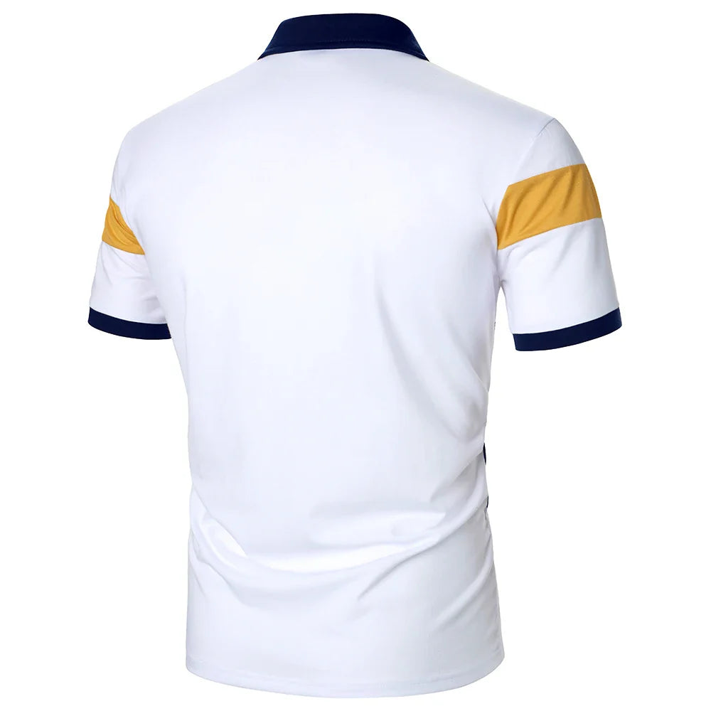 Men Short Sleeve Polo Shirt Contrast Color Stripe Splicing Design Tops Streetwear Casual Fashion Chic Men Lapel Polo Shirt
