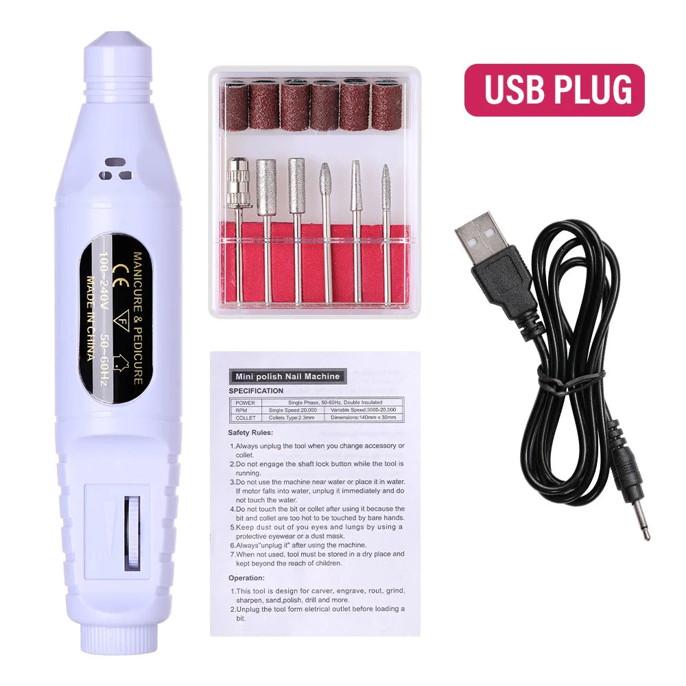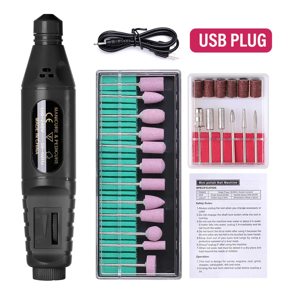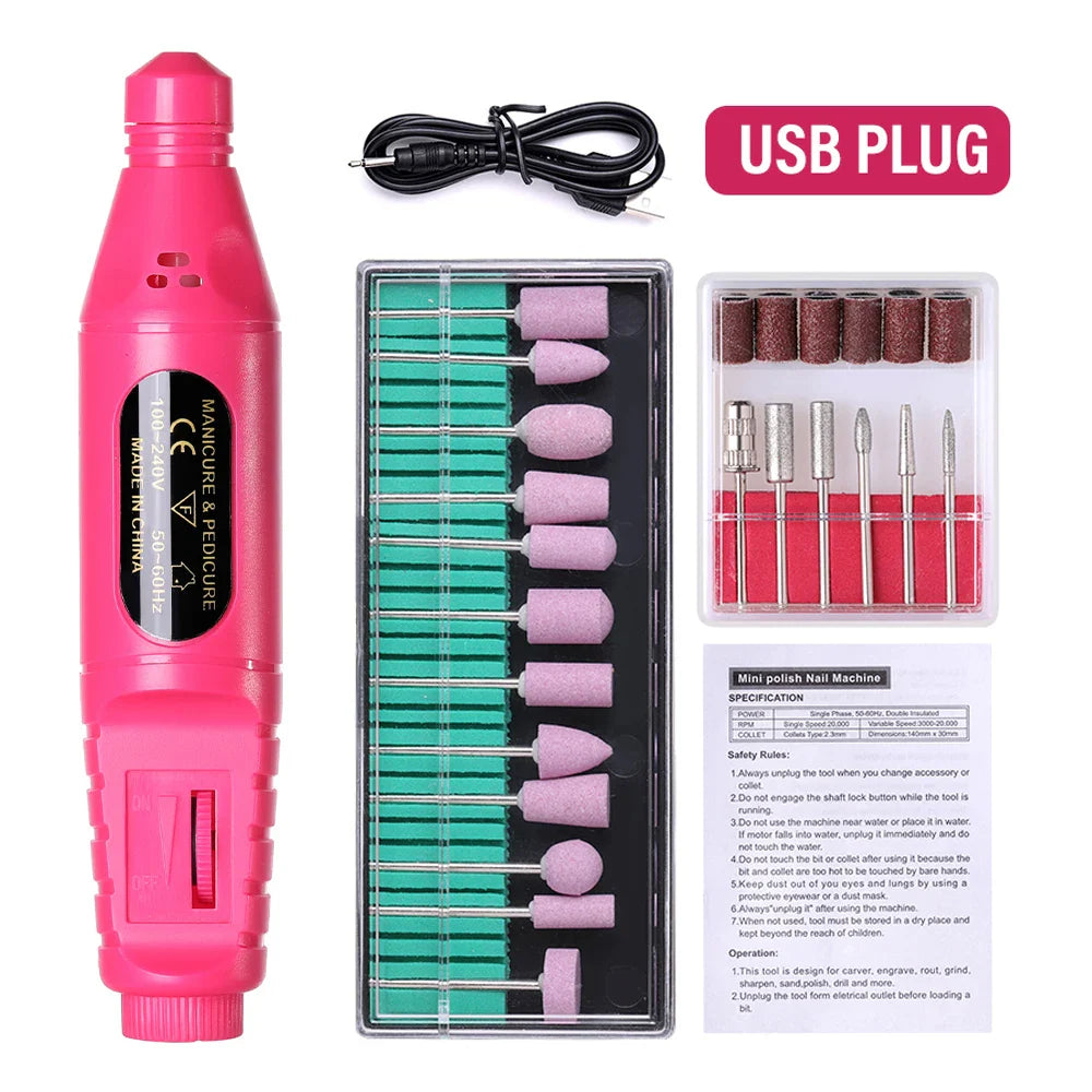 HALAIMAN USB Nail Drill Manicure Set Electric Nail Sander Gel Polish Remover Tools Milling Cutter For Manicure Nails Accessories
