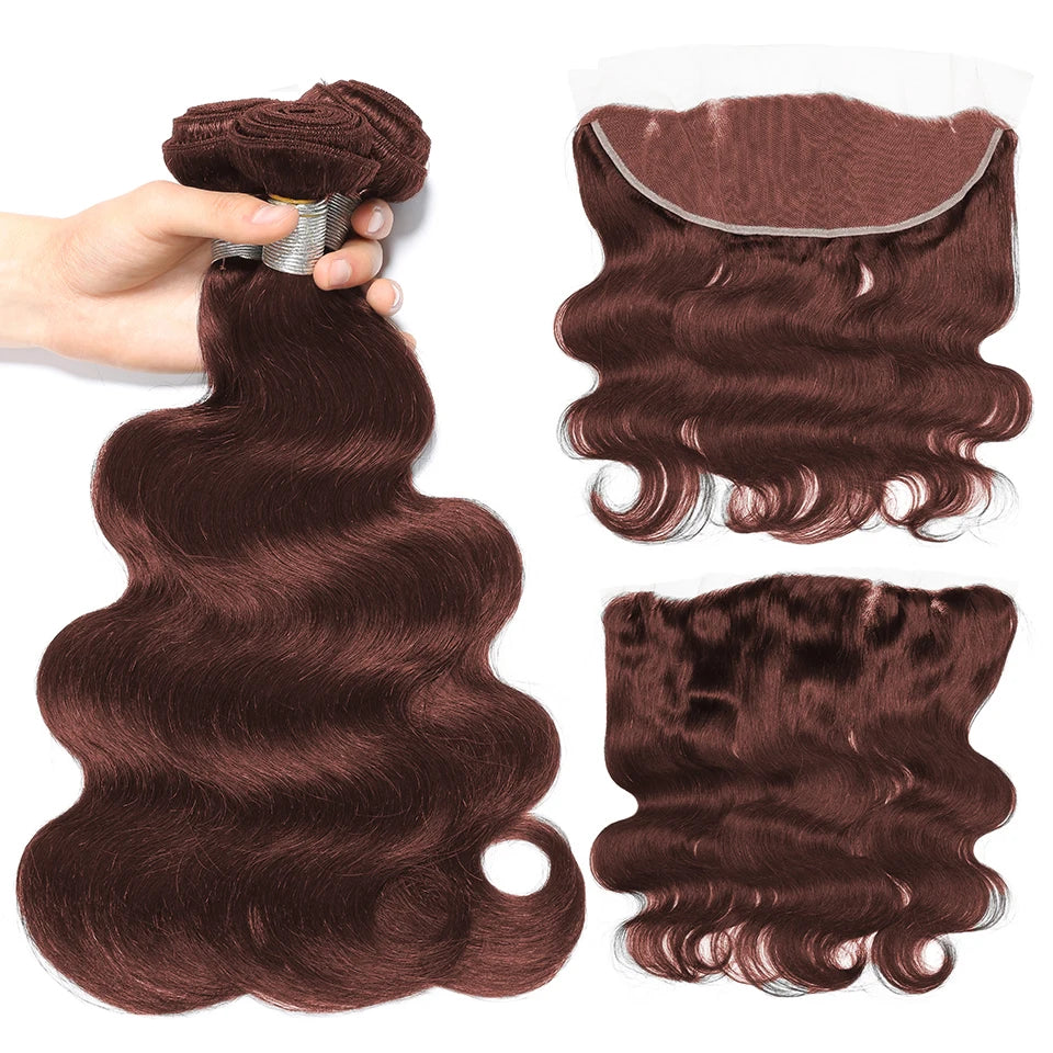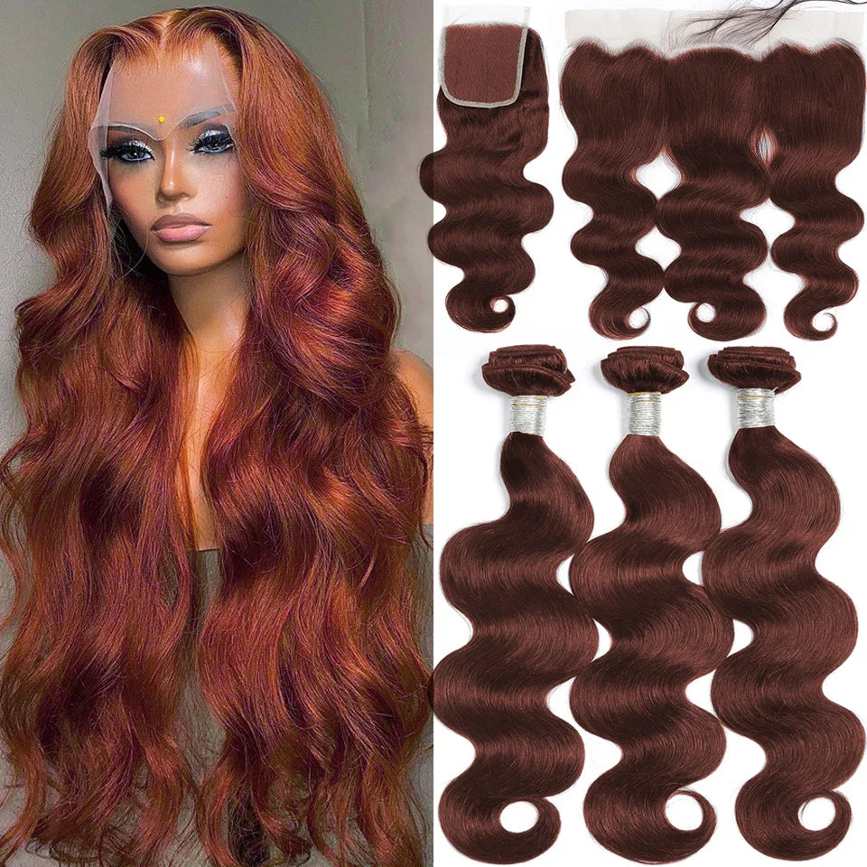 #33 Brown 5x5 4x4 Lace Closure And 30 Inch Human Hair Bundle With 13x4 Frontal Body Wave Peruvian Weave 3/4 Bundles With Closure